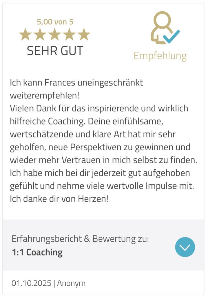 Seit über 6 Jahren begleite ich Frauen in Coachings, Workshops, Kursen und über meinen Podcast. In dieser Zeit habe ich immer wieder gesehen: Nachhaltige Veränderung ist möglich – und sie braucht nicht Jahre.